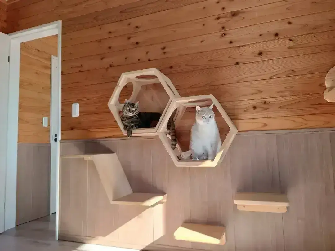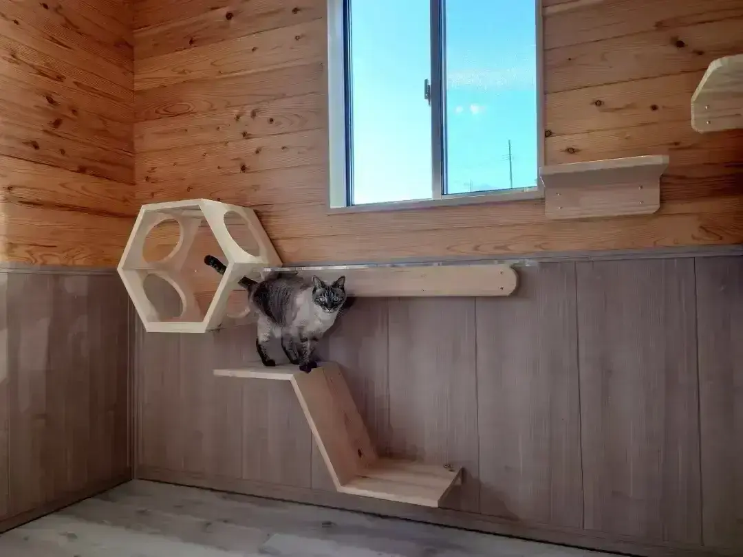 壁に取り付けるため、スペースを有効活用できます。シンプルなデザインから、複雑な立体迷路のようなデザインまで多種多様です。クライミングウォールと組み合わせることで、猫が上下移動を楽しめる環境を作ることができます。